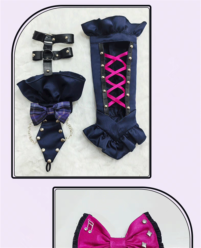 Costume Including: Topwear + Skirt + Stockings + 2 Arm Sleeves + Headbow + Neck Bow + 2 Leg Rings + A Back Bow