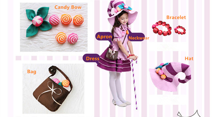 - Product Name: Candy Witch Halloween Kids Girl Costume and Accessories