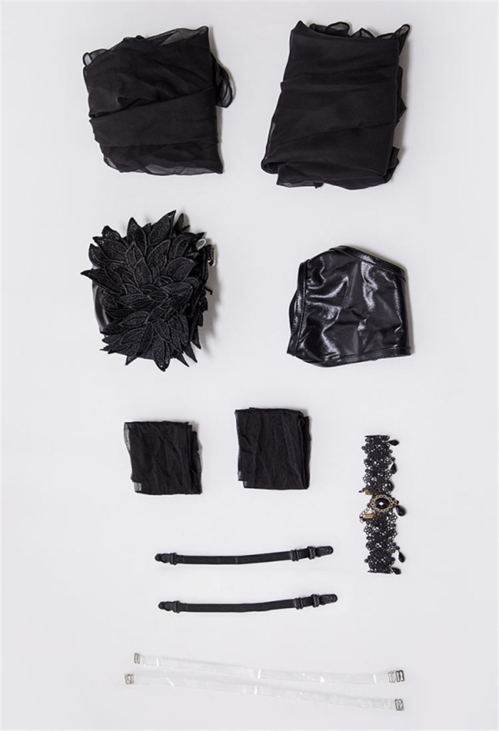 Costume Including: Topwear + Panties + 2 Arm Sleeves + Collar + 2 Transparent Shoulder Straps + 2 Stockings + 2 Garters