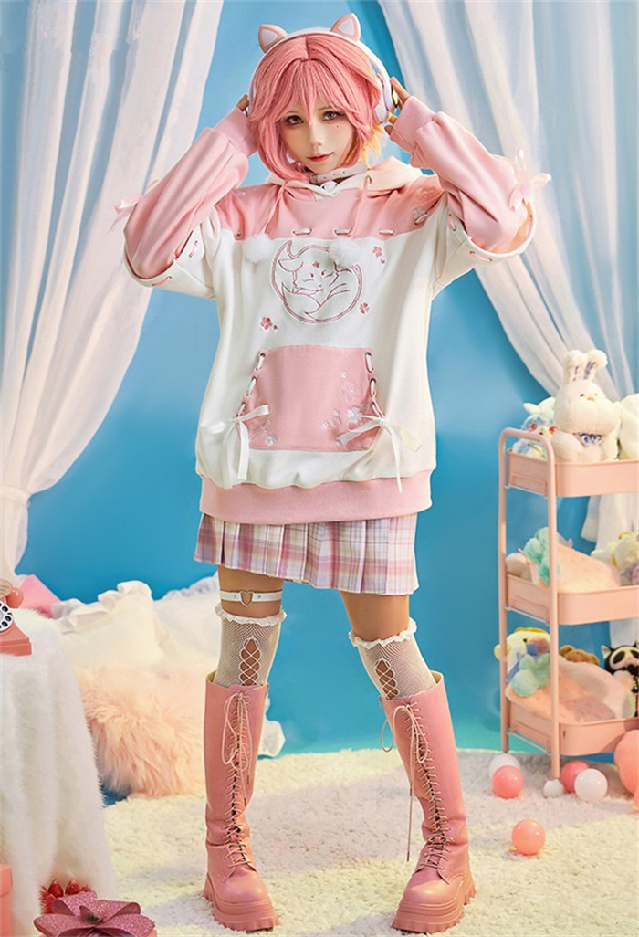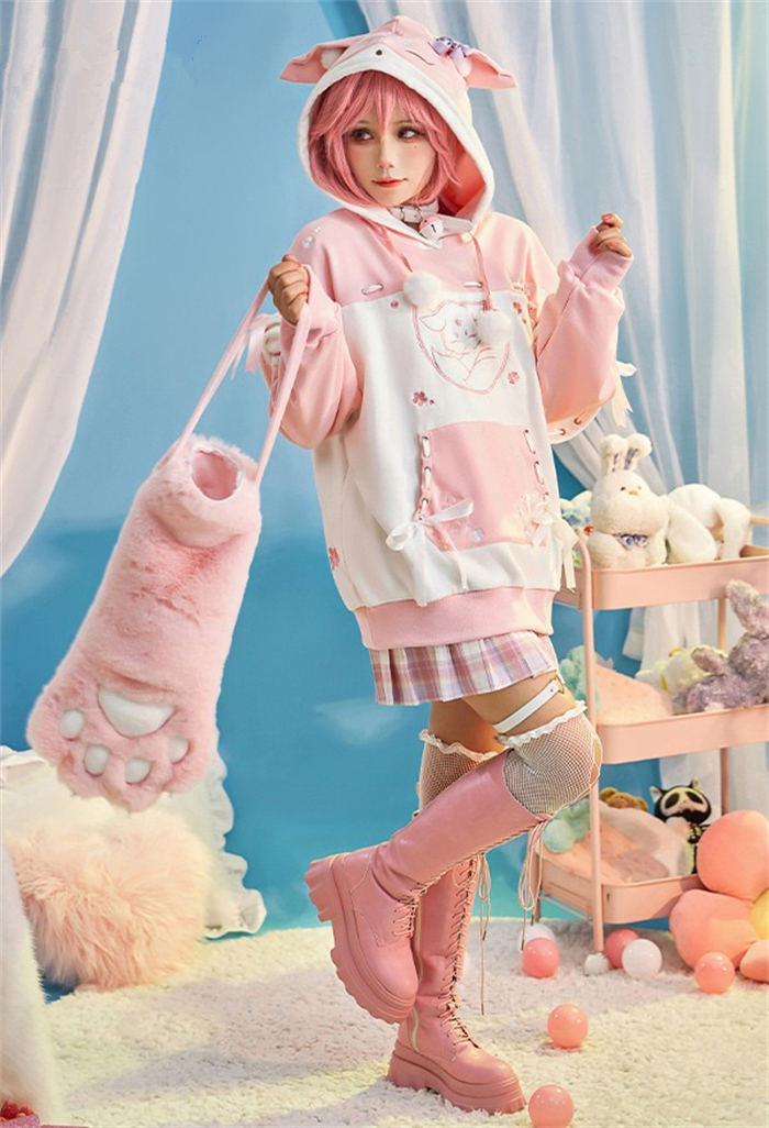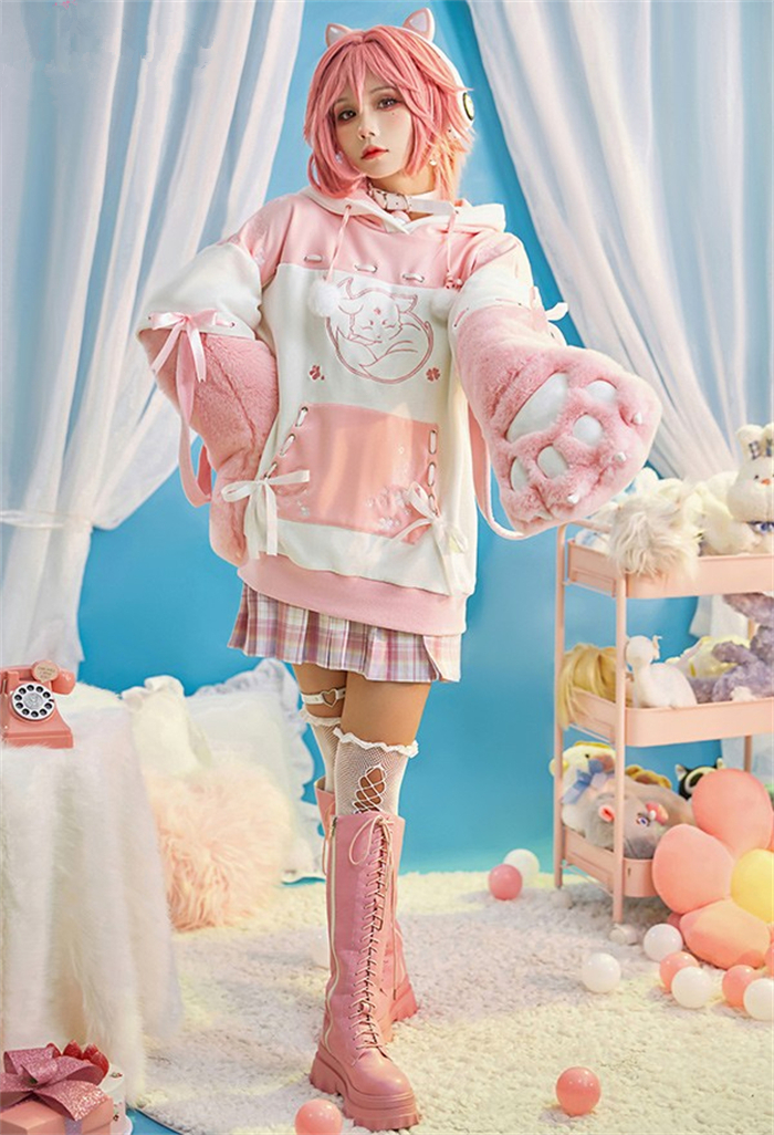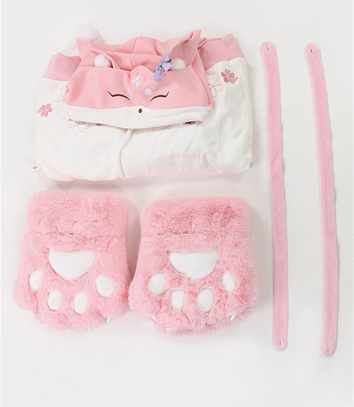 - Product Name: Genshin Impact Yae Miko Derivative Pullover Hoodie with Detachable Bag Design Furry Cat Paw Gloves Fox Style Hooded Sweatshirt