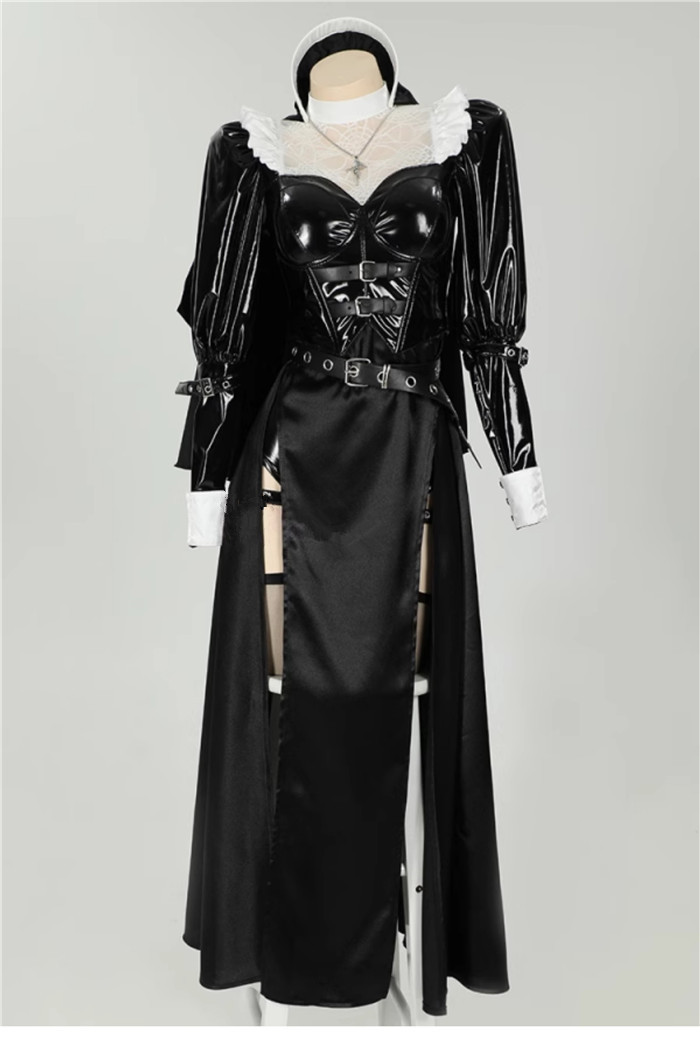 Halloween Gothic Nun PU Cosplay Costume