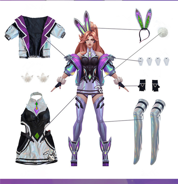 Costume = Jacket + Jumpsuit + Stockings + Gloves + Rabbit Headwear + Rabbit Tail + Wristcuffs + Shoulder Accessories