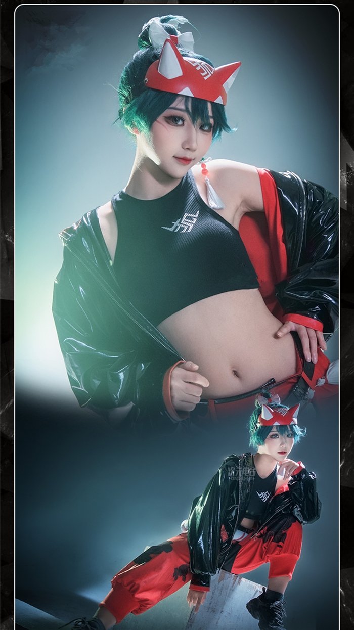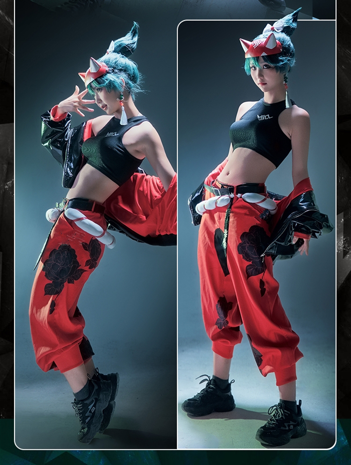 Costume Including: Topwear + Jacket + Pants + Waistband + Waist Accessory + Leather Strap + Head Bow + A Earring + Headwear