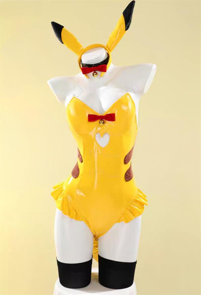 - Product Name: Pikachu Bunny Girl Shinny PU Bodysuit Jumpsuit Cosplay Costume