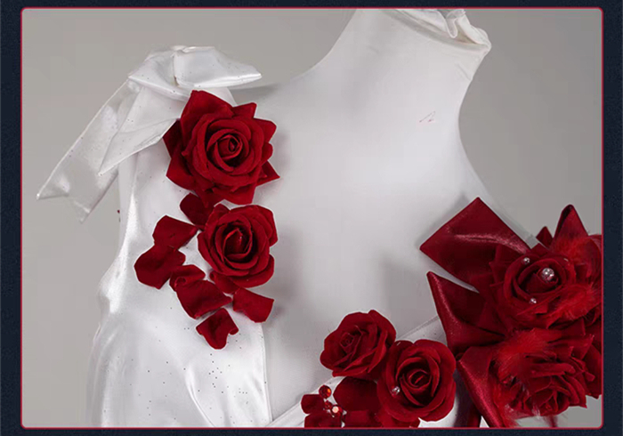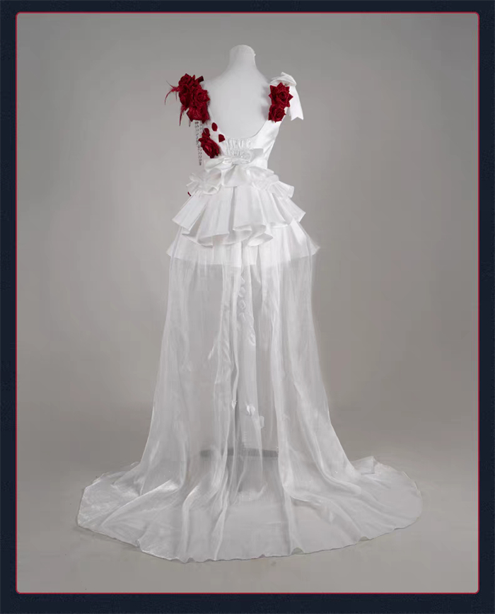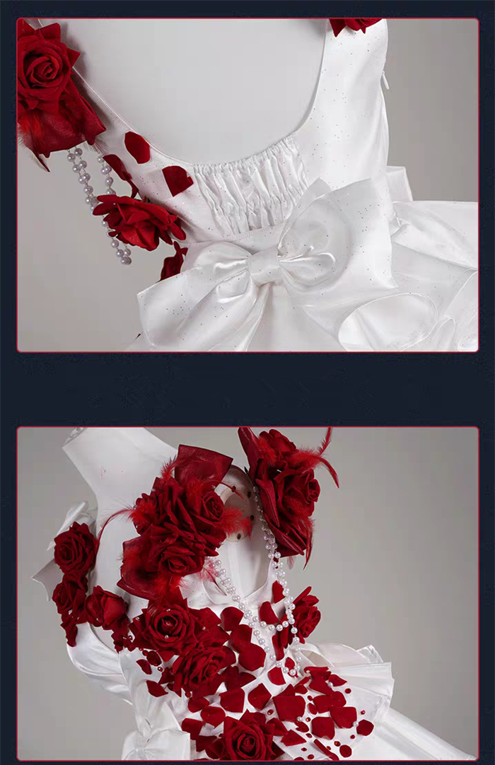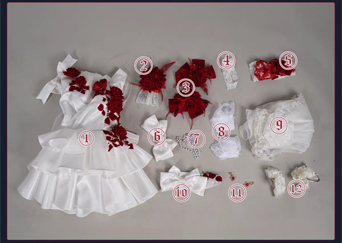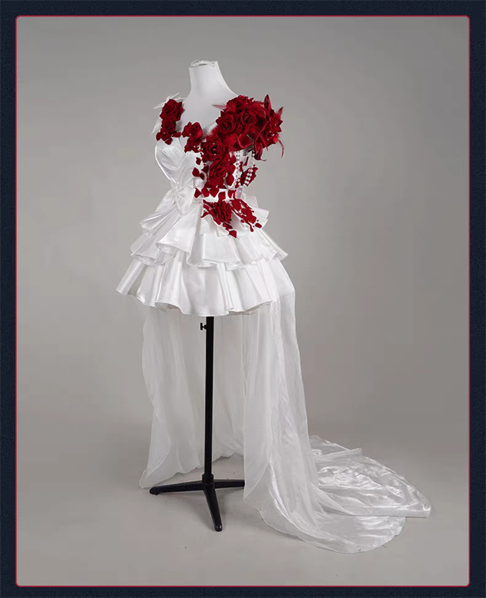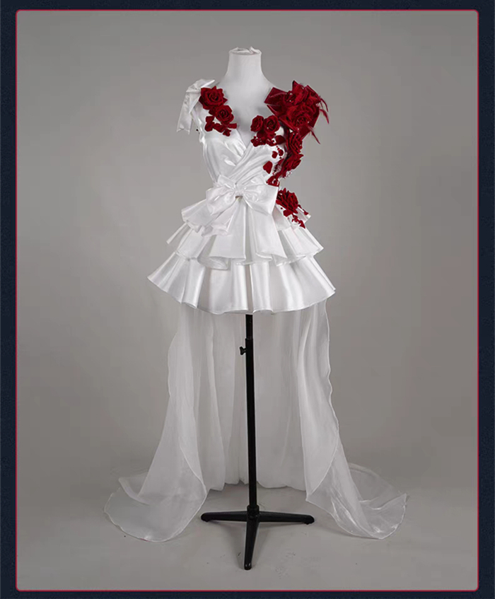 More Details of the CostumeCostume = Dress + Accessories + 2 Shoulder Flowers + Leg Rings + Gloves + Waist Ornaments + Beads + 2 Socks + Veil + Waistband + 2 Earrings + Leg Ornaments + Tailing