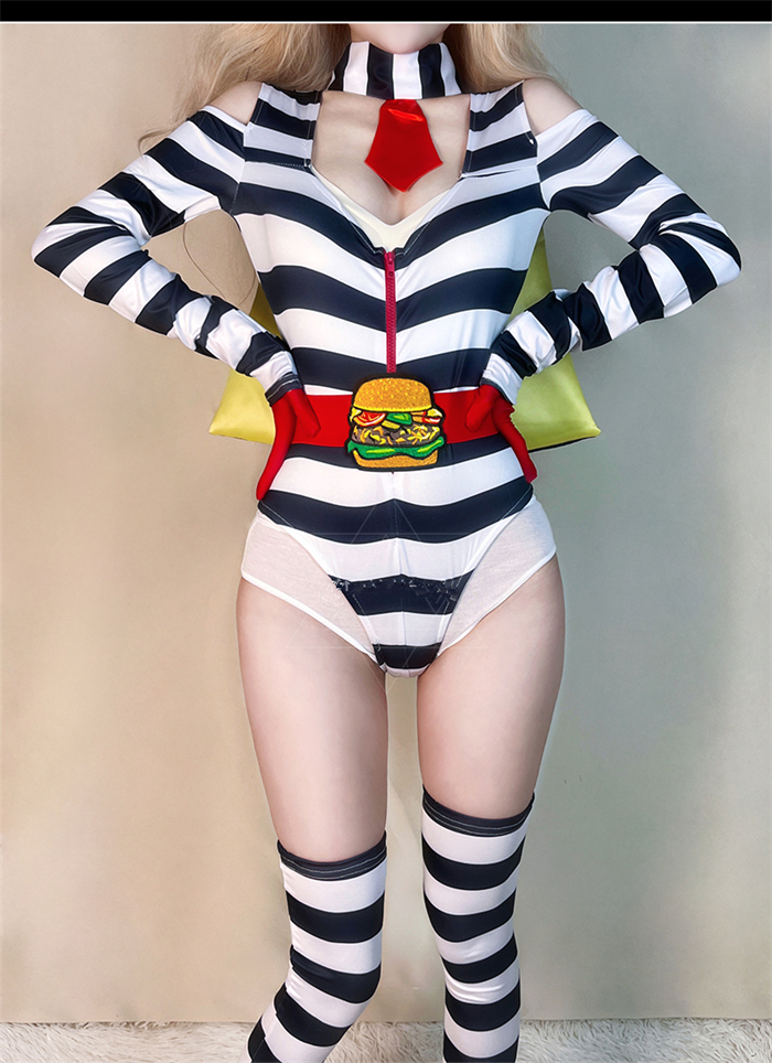 - Product Name: Sexy Adult Party Circus Striped Clown Jumpsuit Halloween Costume