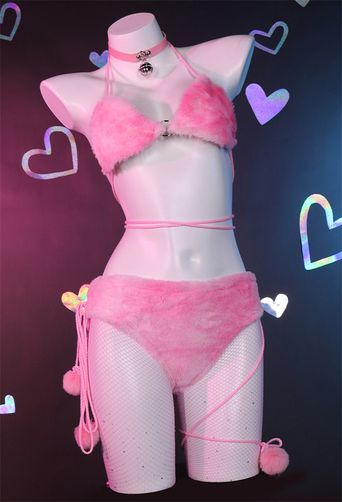- Product Name: Sexy Cute Lingerie Set Cat Pink Paw Furry Outfits Costume
