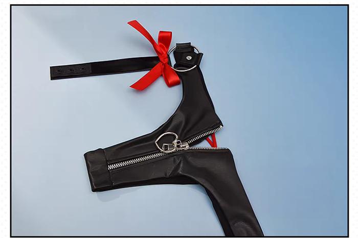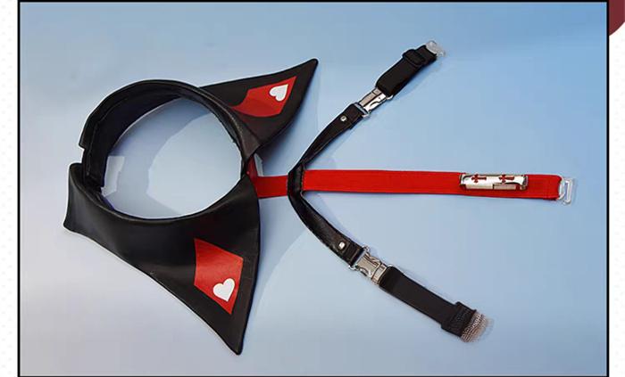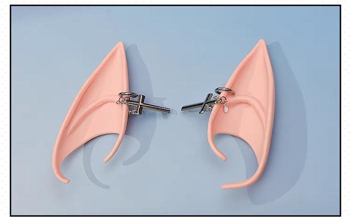 Costume Including: Jumpsuit + Panties + 2 Horns + 2 Hairclips + Headwear + A White Hairclip + A Black Hairclip + 2 Elf Ears + 2 Circle-shaped Earrings + 2 Cross Earrings + Collar + A Cross Pin + 2 Armlets + 2 Leg Rings + A Left Bracelet + A Right Glove + A Back Cross Pin + Wing + Tail + 2 Transparent Shoulder Straps + 2 Stockings