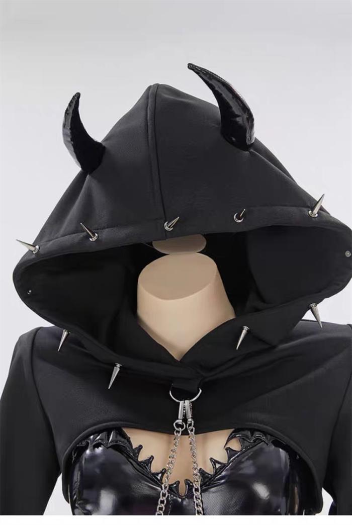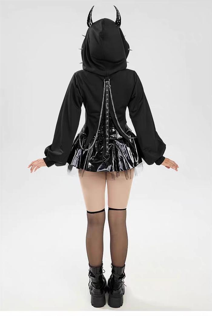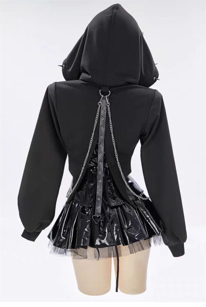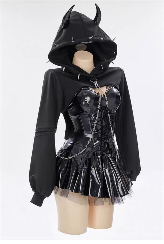 Costume Including: Hooded Topwear + Corset Topwear + Skirt + 2 Stockings + 2 Ornament Chains