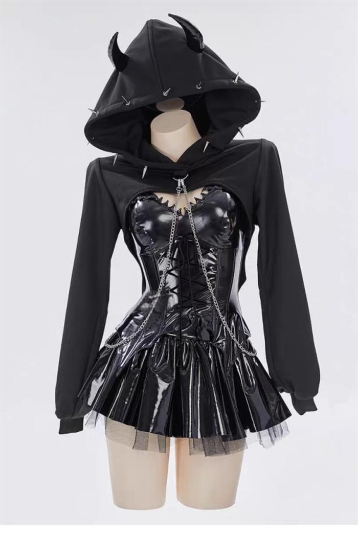 - Product Name: Shinny PU Gothic Dress Evil Demon Halloween Costume