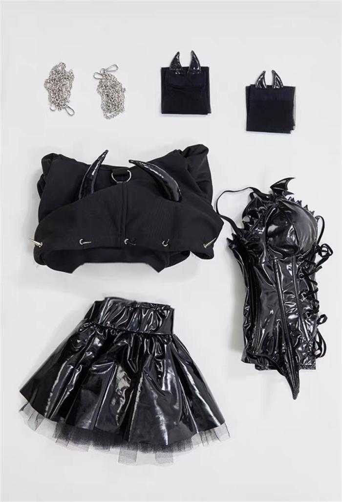 More Details of the CostumeCostume= Hooded Topwear + Corset Topwear + Skirt + 2 Stockings + 2 Ornament Chains